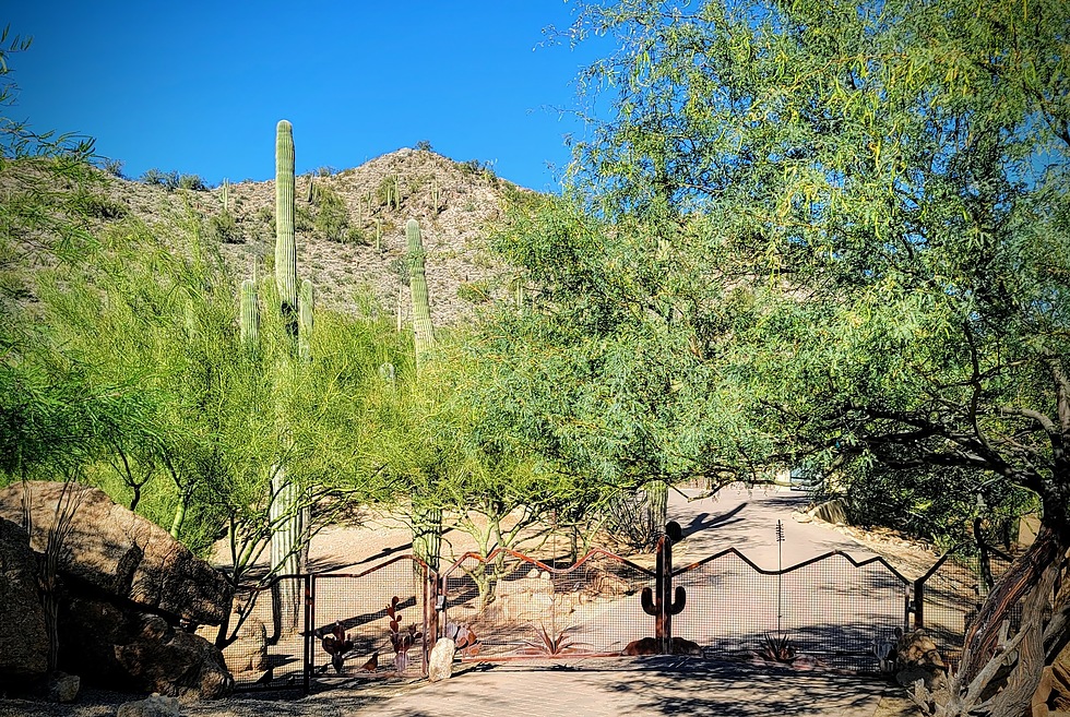 I thot this was a cool gate that we passed by near the end of our hike. I thot the saguaro closure was cool. And see the agaves.