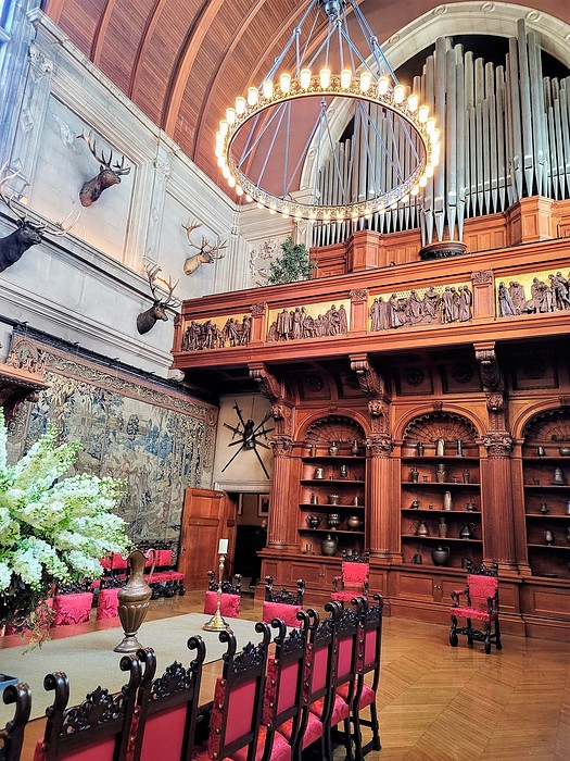 This was indeed a GREAT Banquet Hall, with a 1916 Skinner organ no less. It boasts three fireplaces, a seventy-foot high ceiling, an organ gallery.... and remember, it's a personal residence, not a palace! The Flemish tapestries are from the 1500s.