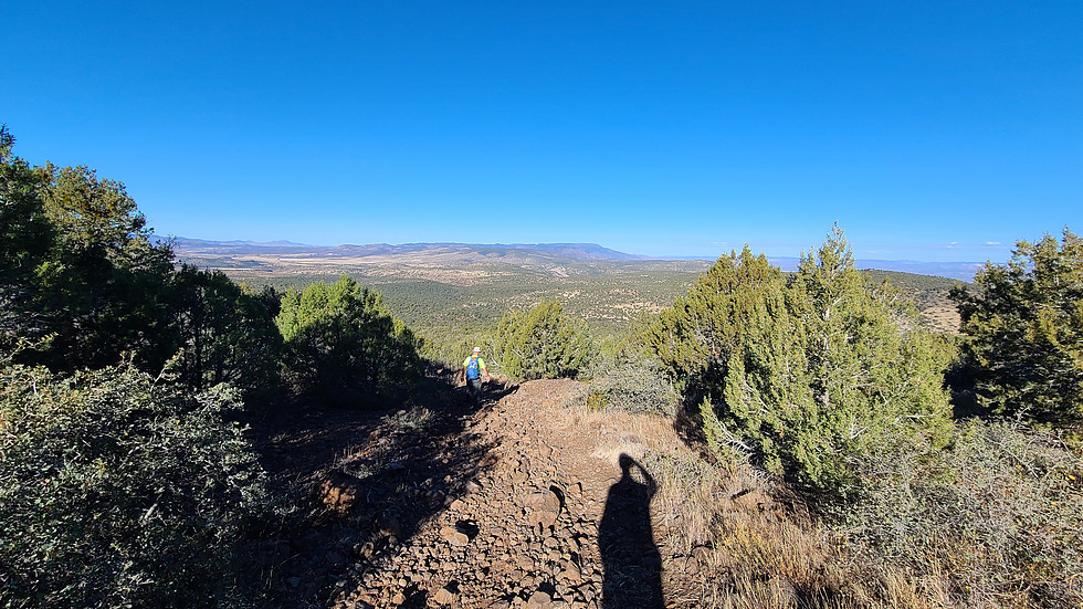 Mingus Mountain is on the horizon. This is Box T Trail #511. We utilized 3.6-mi in the middle of its 10.5-mi run. Interestingly, the upper end is the vicinity that Bob and I ran into private land access issues three times trying to access Reimer and Bald Hill.