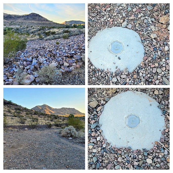 here is some of the work around the Dam that seems new to me. And there's that new rock wall at the start of the Shaw Butte Trail... perhaps it's all related in some way. The disks read: City of Phoenix 7-14A+2020 and the other one is the same except it says 15A. These are on the east side of the dam as are these other two pictures that show rock work and dirt work (looking south in bottom left photo).