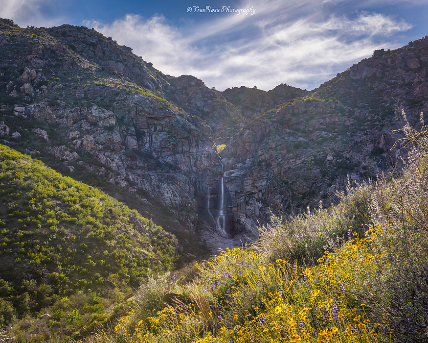 "Castle Creek Waterfall:" Castle Creek Wilderness is a remote area in the Bradshaw Mountains that required my hiking 10 miles round trip in fully exposed sun and water crossings somewhere around at least 15 times each way but I honestly lost count, including a fairly high and fast-moving Bumble Bee Creek to start. This ephemeral waterfall is listed as125 feet tall and is limited in flows from recent heavy rains or snowmelt, so timing is critical. I caught the tail end of the water's flow here, but at least was lucky to capture some unexpected wildflowers in the vicinity. This image was taken in spring of 2020. I encountered zero other people during my entire trek there and back. It was a long day. Sadly, this past year, a wildfire swept through this entire area, and I wonder how vastly the views have changed since then. I am grateful that I was able to venture out here when I did and capture some photographs at that time. Thank you so much to Joe Bartels and Joel Hazelton for responding to my inquiries during the research stage of my planning this solo trip.