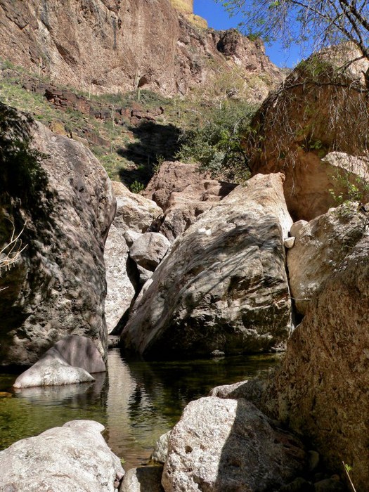 Naw, we didn't come that way. We actually had to portage around that on the south side when we headed back west.... this photo, however, is obviously looking east and slightly north. There was actually a cool cascade of water coming out under where you see that little boulder lodged... but we couldn't get to it as the water was too deep.