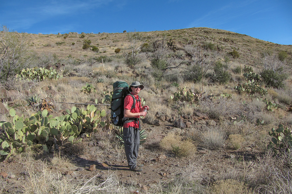Lloyd with a very heavy pack now that he was carrying 1.5 gallons of my water plus two gallons of his.