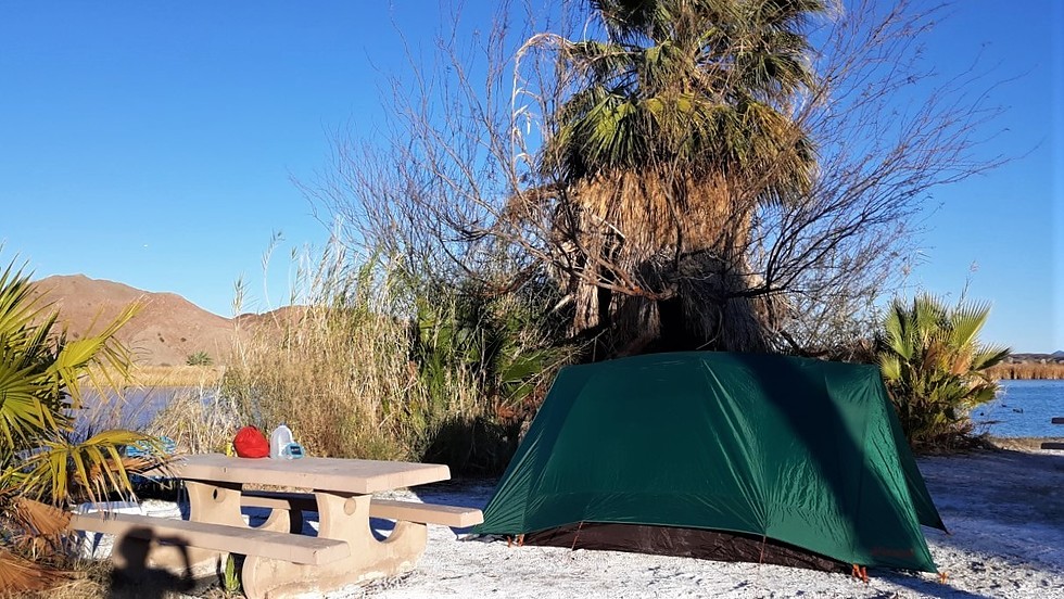 More glamping. I bought tent for my two month trip to Florida. It's a 4-person Eureka Timberline, outfitter model, can be set up with rainfly only. Instead of being all mosquito netting in the tent body, it is mostly fabric, so is warmer inside, especially with that propane heater!