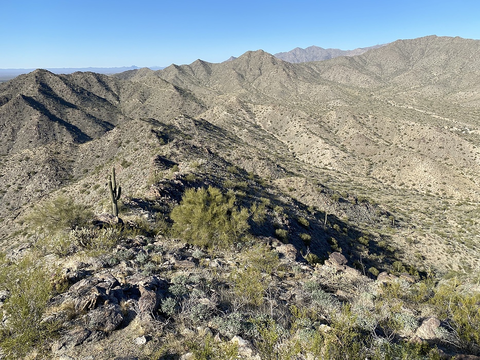 Remaining ridgeline. Pyrite trail in the distance, Barry Goldwater in the back
