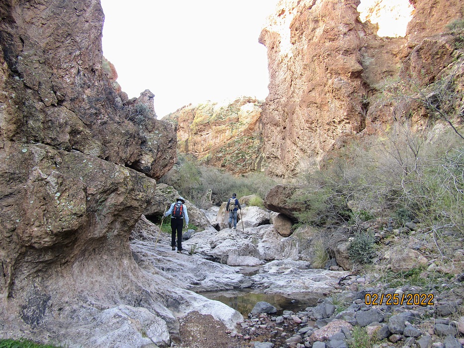 The trail leads to the wash that we dropped down into to scramble toward our saddle crossing.