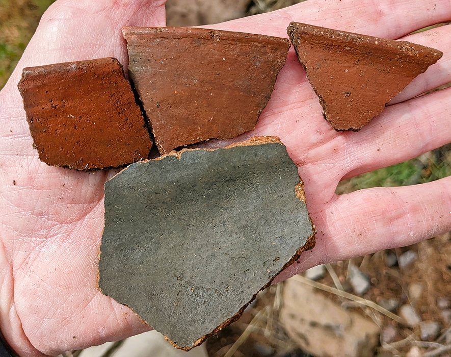 Not a lot of pottery but here are some rim pieces and one where you can see the black inside.