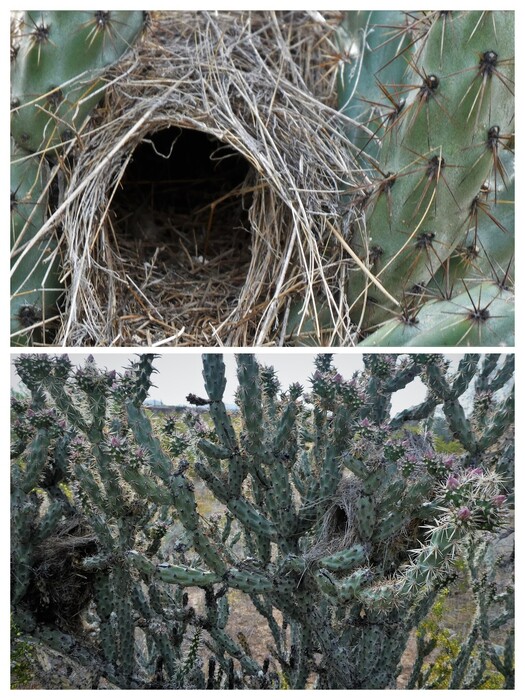 a close up of the nests. No one home at either. Bottom photo: top entrance nest on the left and side entry on the right. Front entry nest on top.