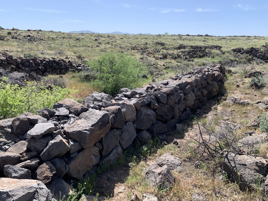This is one of the walls built in a rectangle around the tinajas in the bedrock of the main drainage near the site. The walls seemed to be built a little differently and with some more precision here, but I do not know if that means anything.