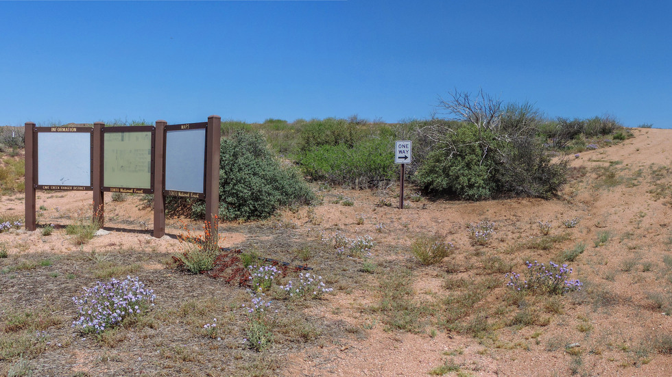 Came across these well built Tonto NF information boards with no info and the only access being a dirt track with a sign "No Motor Vehicles Allowed" and behind a locked gate. They are not visible from the Horseshoe Dam Road which is almost a 100 yds away. The "One Way" sign is a nice addition. The stout steel post construction embedded in concrete must have cost a few thousand $. It doesn't look very old. What were they thinking?