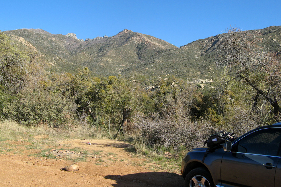 End of the day, back at the start, that's Big Saddle just right of center, Four Peaks behind.