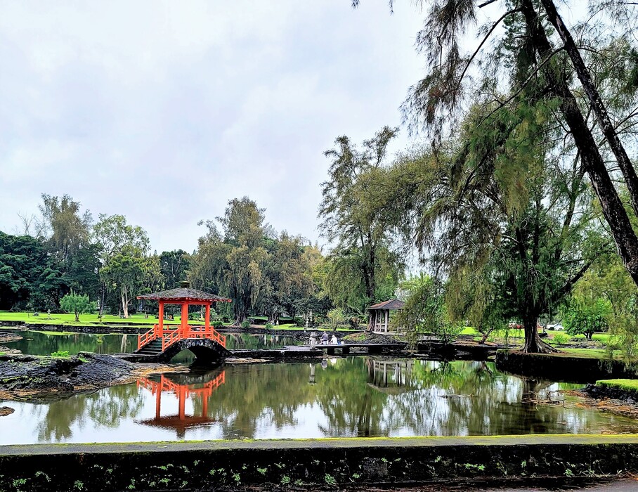 Liliuokalani Gardens located on Banyan Drive along Hilo Bay. The largest authentic ornamental Japanese garden outside of Japan.