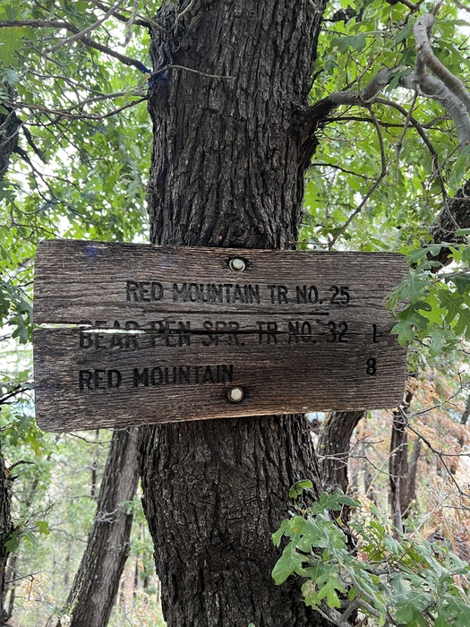 I think at one time you could drive to this sign as the Bear Pen Trail utilizes a pretty well developed old road bed from the south and the forest service includes a one mile roadbed walk in its description from the Strayhorse TH.