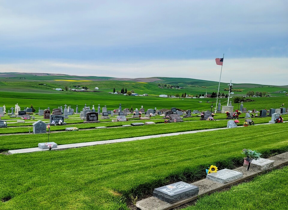 The town of Greencreek was named after Green Creek, Illinois where most of the settlers here came from. We love how they laid out this cemetery with the long cement blocks to hold the headstones. Once again, we have many relatives buried here including our second great great grandparents interred here in the mid 1920s.