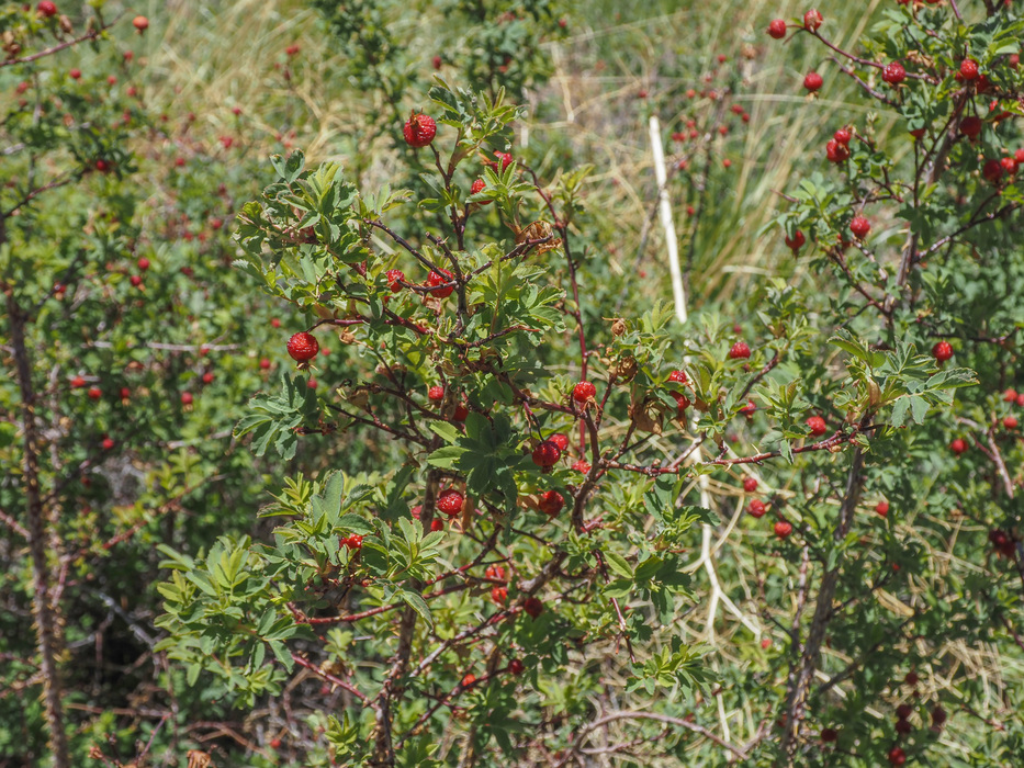 The berries on these bushes looked like tiny Christmas tree ornaments.