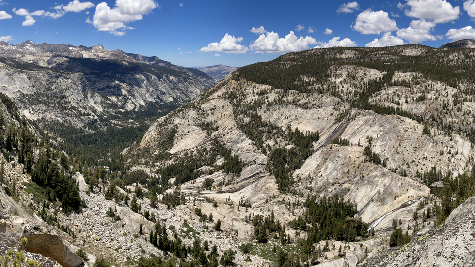 After the big climb out of Lyell Fork, looking down into the Merced valley where we'll pass by tomorrow.