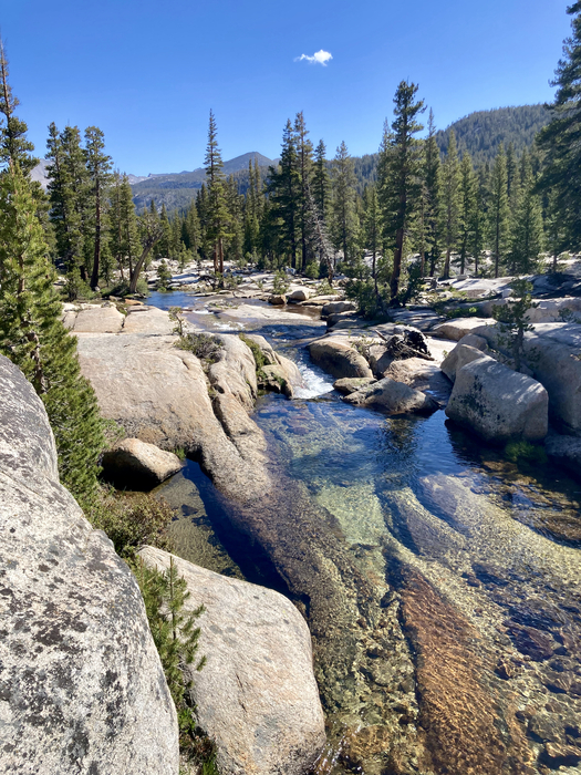 Crystal clear snowmelt rushes down Triple Peak Fork