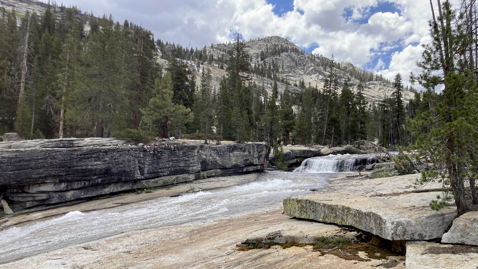 The headwaters of the Merced River have eroded a lot of smooth granite