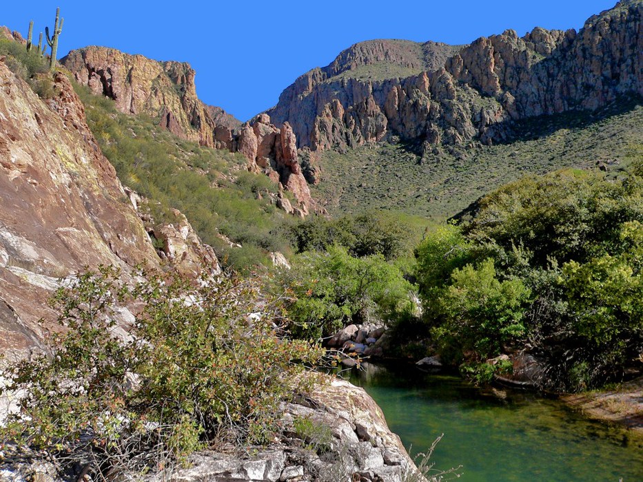 This is looking back at where we had been. Obviously no trail and no cairns so you just have to more or less make your way. That green-colored water just really stands out.