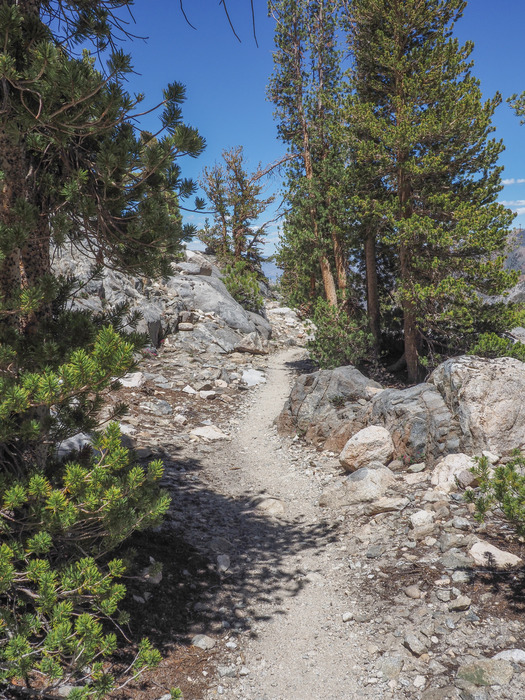 View of where the trail starts to drop down the steep hillside/cliff after leaving the lower lake on the way back to the trailhead.