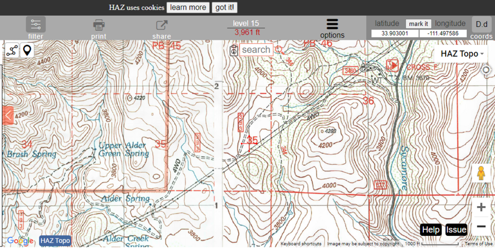 About here is where it is, under the powerlines.