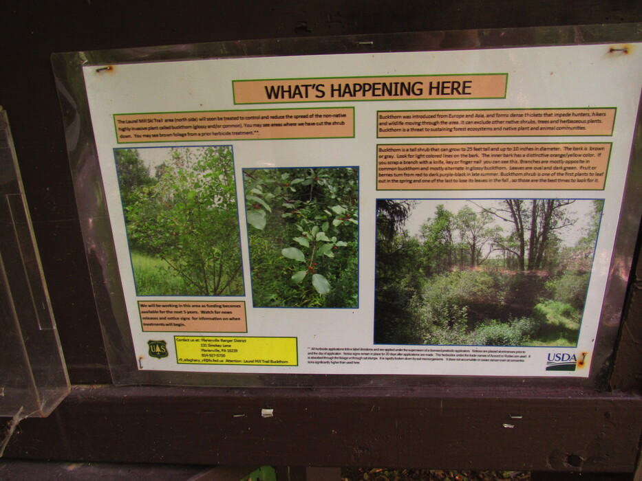 Notice on invasive species of plant in the forest and how they're trying to thin them out here. These were all over my property after only a few years of not taking care of it. I spend over 2 days clearing the lot out and cutting dozens of these seedlings.
