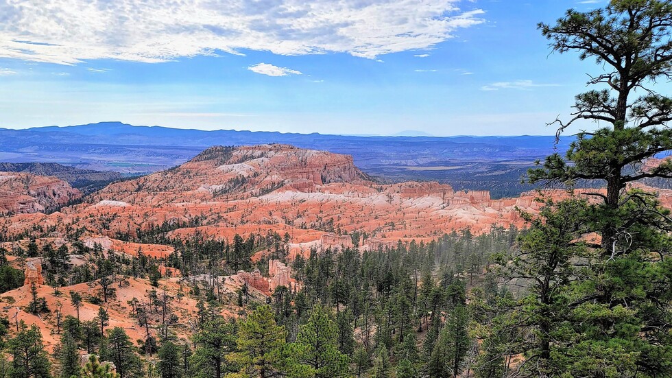 I think I am looking more east here. It's hard to believe... but then again it was so long ago: at various times in the past, this region was a floodplain, part of a sea, and a desert. The Colorado Plateau, beginning about 50 million years ago, was a mostly flat part of a lake and floodplain system. This area was surrounded by higher elevations, carrying sediment downwards where it was deposited. The sediments were cemented over time to form various sedimentary rocks, including sandstones, dolostones, limestones, and mudstones.