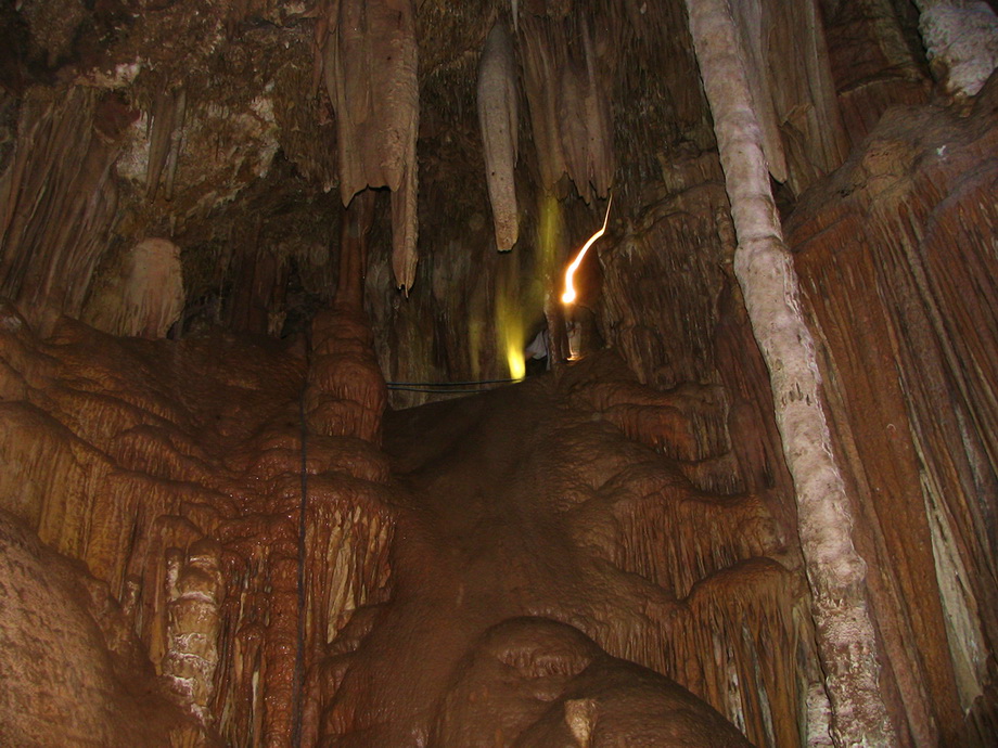 Headlamp strobe in side room, note the handline depositing you on a huge hill of ancient bat guano