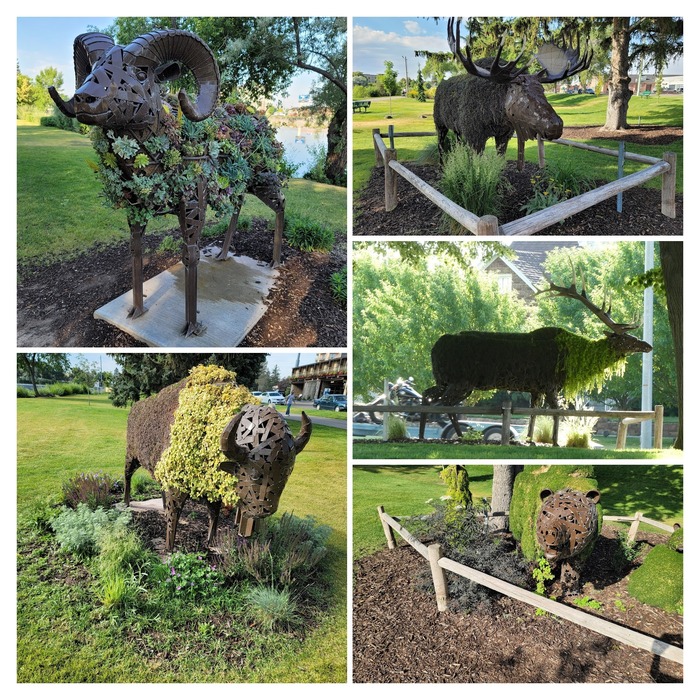 The Idaho Falls River Walk consists of the falls and 14 miles of river bank and this greenbelt. These are only a few of the living sculptures along the way on both sides of the river. It must be quite the chore to keep those plants going.