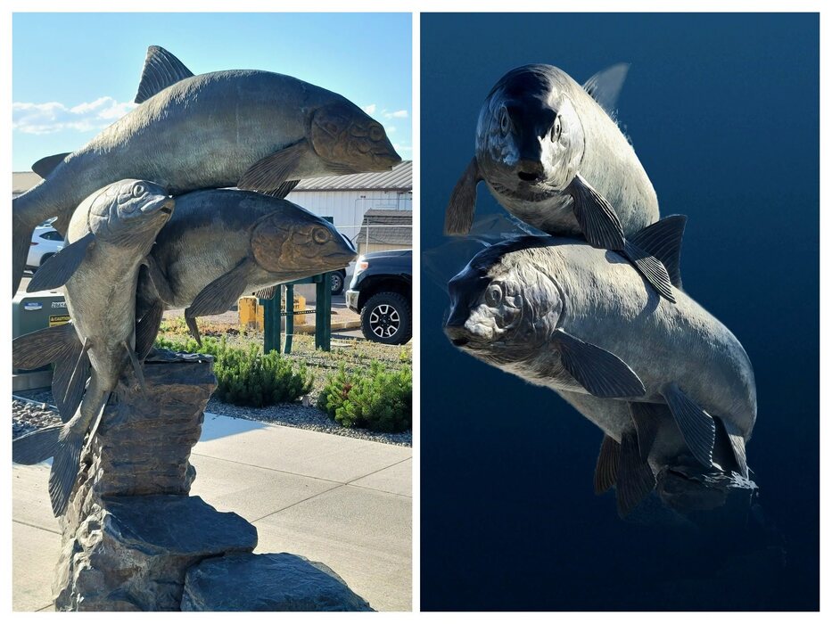 I don't know if this is the temporary place for the sculpture called "Whitefish Rising" as it was originally in a pond in Depot Park across the way https://s3.amazonaws.com/gs-waymarking- ... 75feef.JPG. However, the pond was removed in 2020 and this seems to be the spot for now. Looks like the original spot was perfect for it, not sure why the pond was removed. https://www.waymarking.com/waymarks/WMM ... itefish_MT