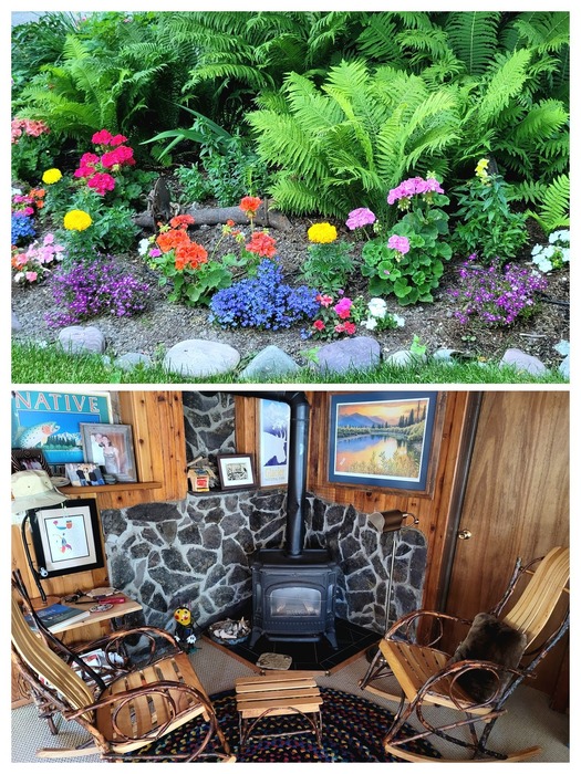 My cousin's lovely little garden on the corner that they share with the house next to them. And doesn't that living room corner look so cozy; especially with a hot toddy or a nice glass of red wine!