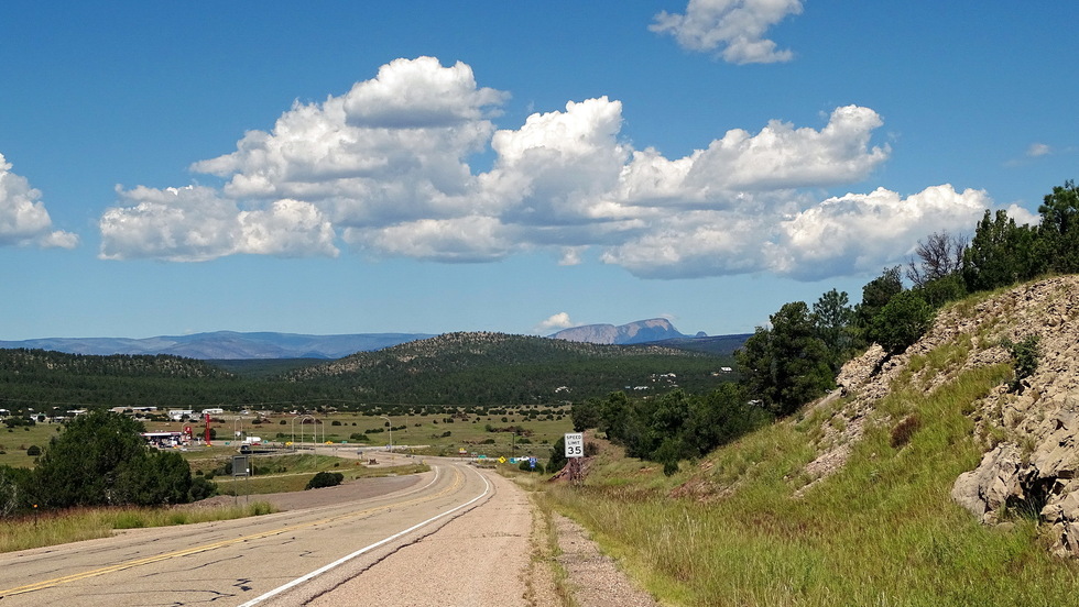 nearing the junction of US 84 and I-25 near Las Vegas, with Hermit's Peak and miles upon miles of charred landscape in distance