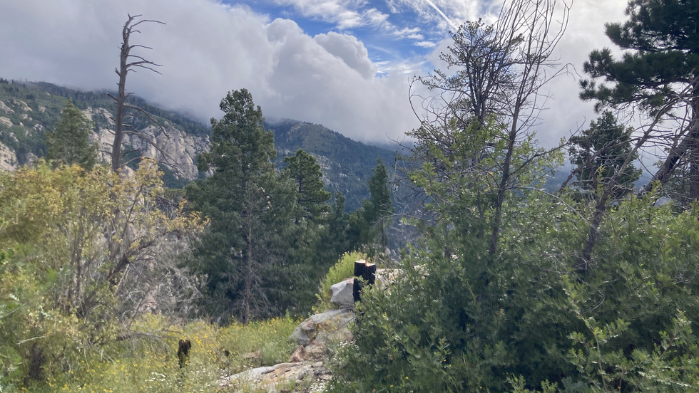 The top of the mountain was socked in with clouds for the first couple of hours of the hike. We were in the clear heading down.
