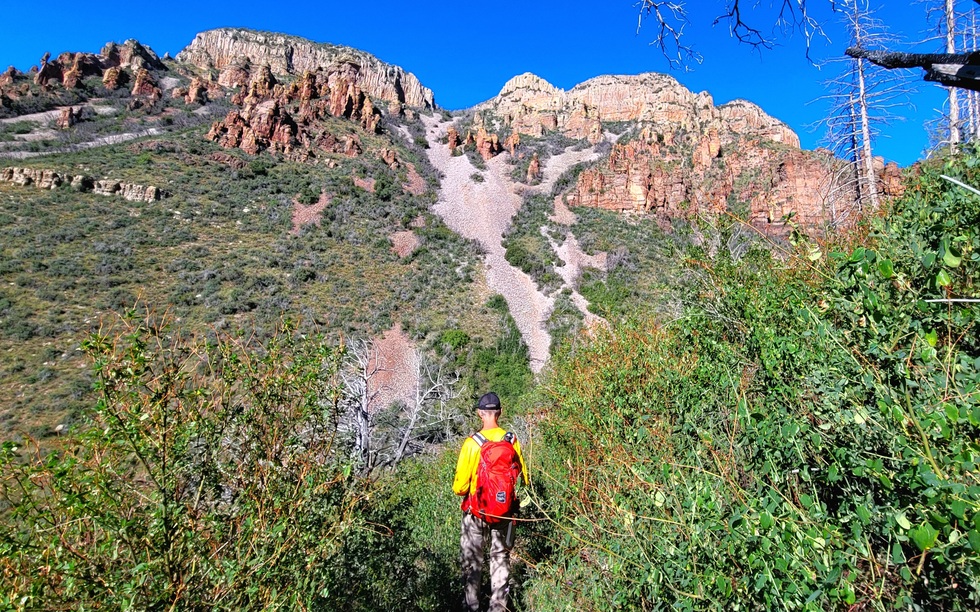 headed down on trail