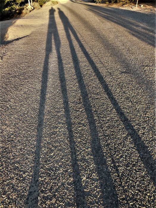 Los Dos with long legs on a short section of the Military Trail that is paved.
