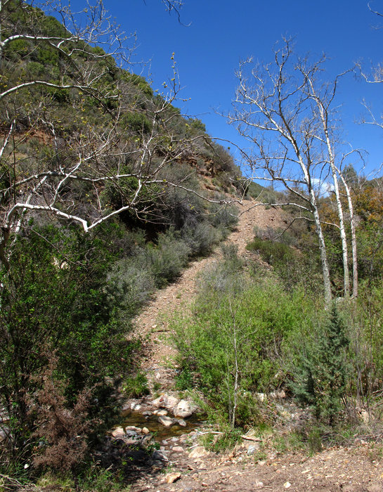 Shortly after reaching & crossing the West Fork of Sycamore Creek on FR25A, if you are following GPSjoe's posted route, you will arrive at this "easy to miss" old 2-track road heading left(west) uphill to the two named "Sunnyside Claim Mines"(lower & upper);