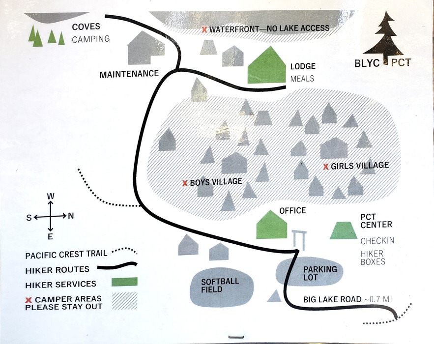 The information sheet showing the location in green of the "Hiker Services" they provide.