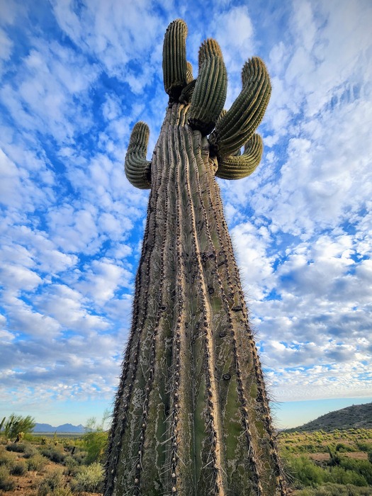 seems a hairy looking saguaro. With my wide angle option on my cell camera I was able to be up close with this saguaro and still give you a sense of its stature.