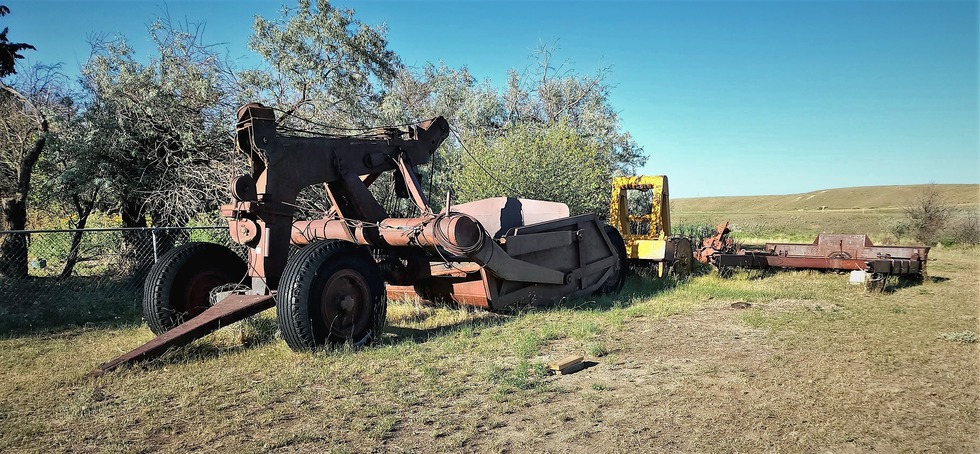 This is the dirt mover they used when building dams in the 40s and early 50s. I have some home movies that the Romains took that include some dam building. It's one of my more popular videos. The dam building starts at the 5 minute mark [ youtube video ] The first part of the video is plowing etc and in between you'll see a troublemaker.
