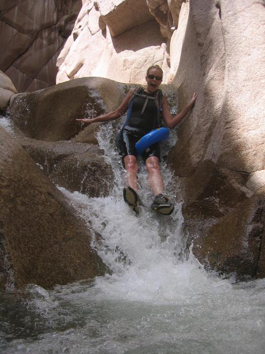 Navigating a chute...note the advanced floaty around one leg technique :)