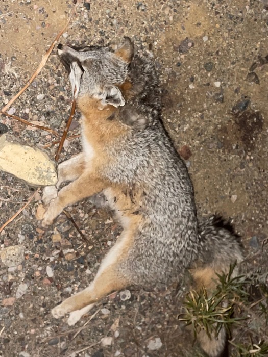 Very sad to find this dead fox behind the kiosk at Cell Phone Point.