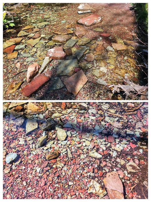 Different layers of rock in Glacier can be dramatically different colors, and their color can tell us a great deal about their history. The process that created these striking colors centers around one element: Iron. The argillite in the park throughout its formation contained significant amounts of iron, which is a reactive metal. Much like metal on an old car, iron will oxidize (or rust) and turn reddish/orange when exposed to oxygen. The red colors in our rocks formed the same way! As the belt sea began to retreat, it exposed argillite and the iron within to oxygen, allowing for oxidation to occur.