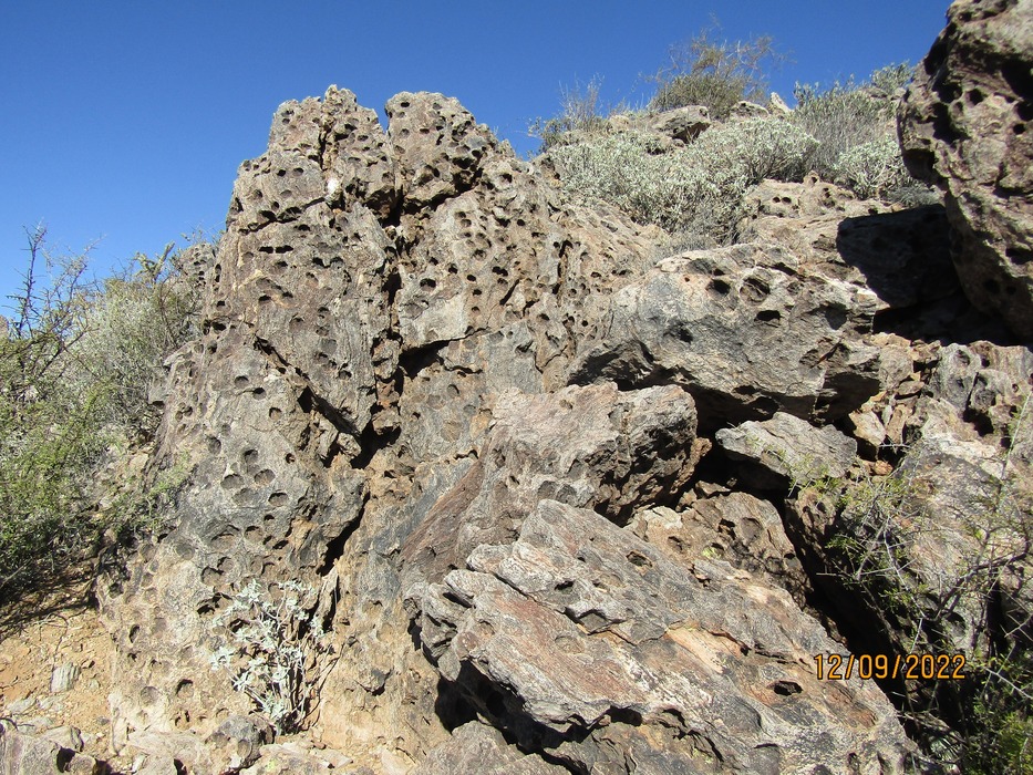 We choose a route to Pedestal Arch via this "holy" sight. All the rocks in this area seemed to have holes drilled into the rock.