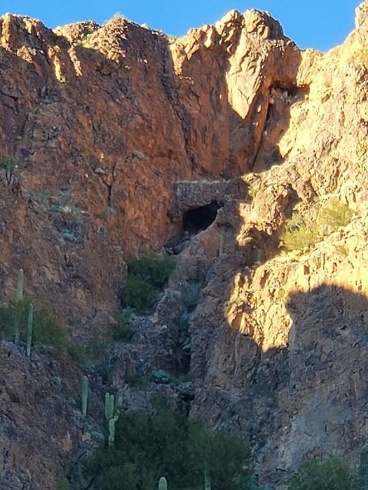 Some kind of man made shelf or dam way up high. It did not look natural.
