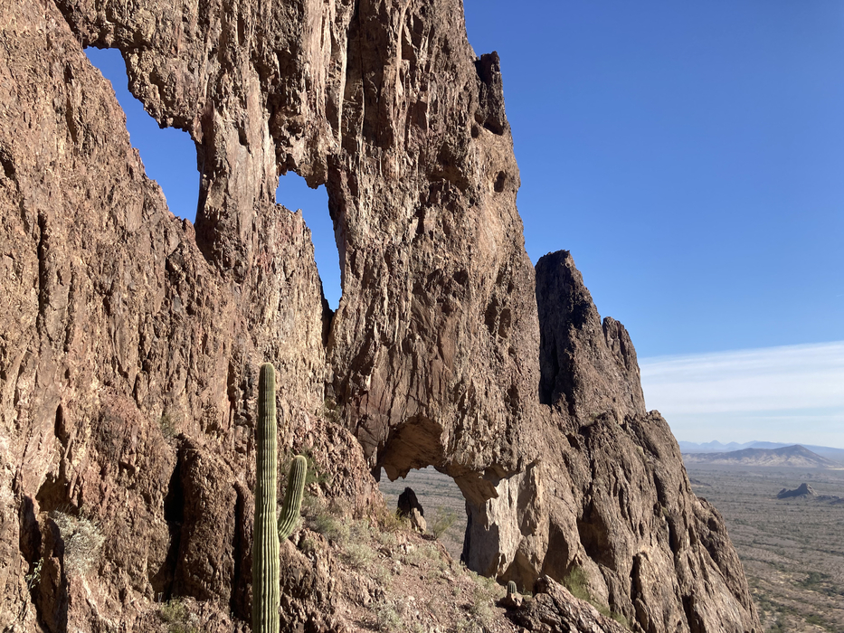 The main arch is part of a series of three voids in this vein or dike or whatever geologists call it.