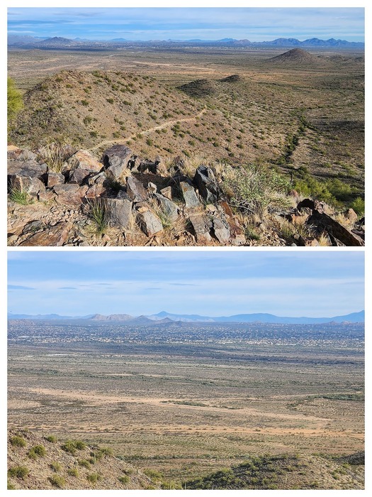 Bottom photo I zoomed over to whatever that road is in center of photo. It is to the left or north of the GO (Great Horned Owl Trail) that you take clockwise around to the east side of Union Peak. I think you can also use that trail to get over toward the dam.