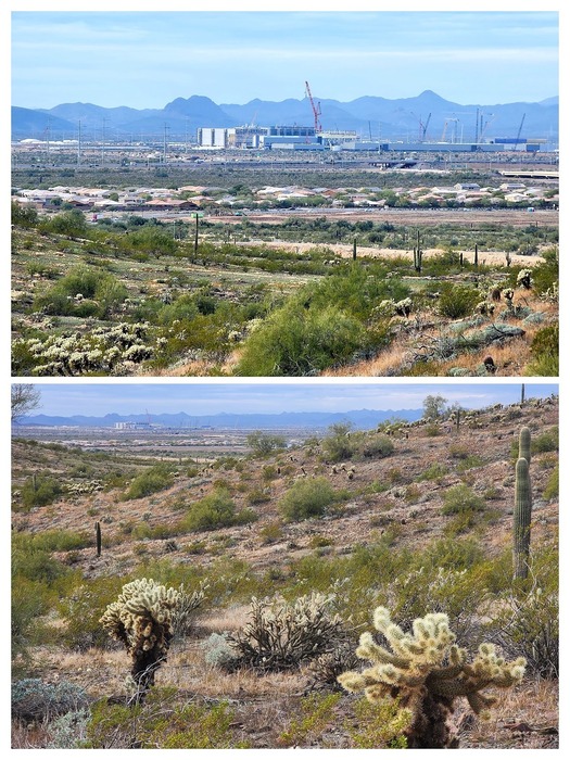 as you round one of the corners on this north side you have a view to the TS plant which is now, much easier to see since the construction of the buildings is much further along. The top photo shows a zoom to the construction and the bottom photo shows the buildings from here... to me, that's how much more it stands out now.