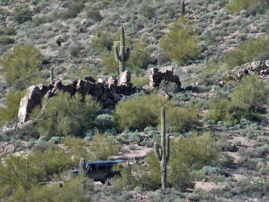 Here is the zoom of it. Yep, I'd say it's natural but I do think I'm going to take a closer look the next time I'm out there. If you're walking on the road, go past the wash that you normally turn into and go up the hill a ways to get to it.