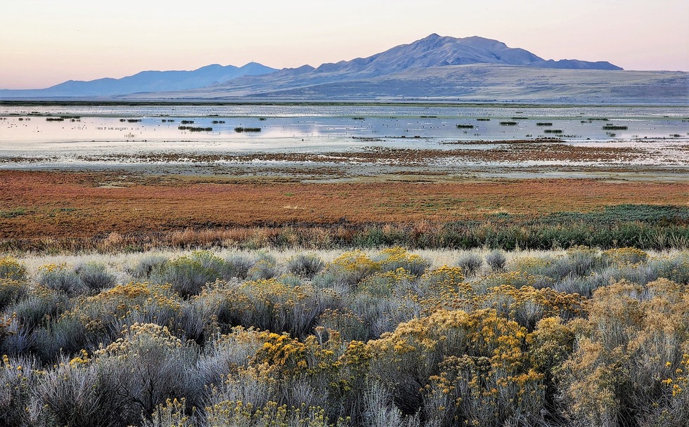 Looking over at Antelope Island with Farnsworth Peak from the northern end of the Oquirrh Mountain range to the left background. We are on the causeway that traverses this part of the lake. 36 miles of hiking and mountain bike trails, Kayak and paddleboards rentals at the Great Salt Lake marina.