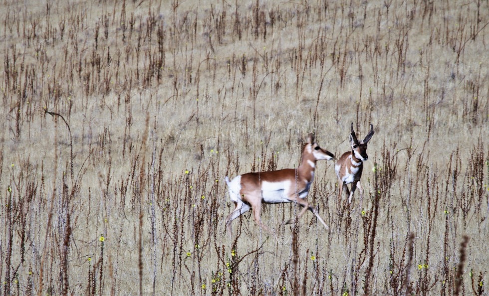 In amongst fields of Twiggy Mullein was one group of antelope. Male was very busy and the females were very flirty. FYI Pronghorns aren’t Antelope at all. Like the bison, they are misnamed. They are the sole survivor of the family: Antilocapridae. And like I said, I have lots of video: Part 1 - [ youtube video ] Part 2 - [ youtube video ]